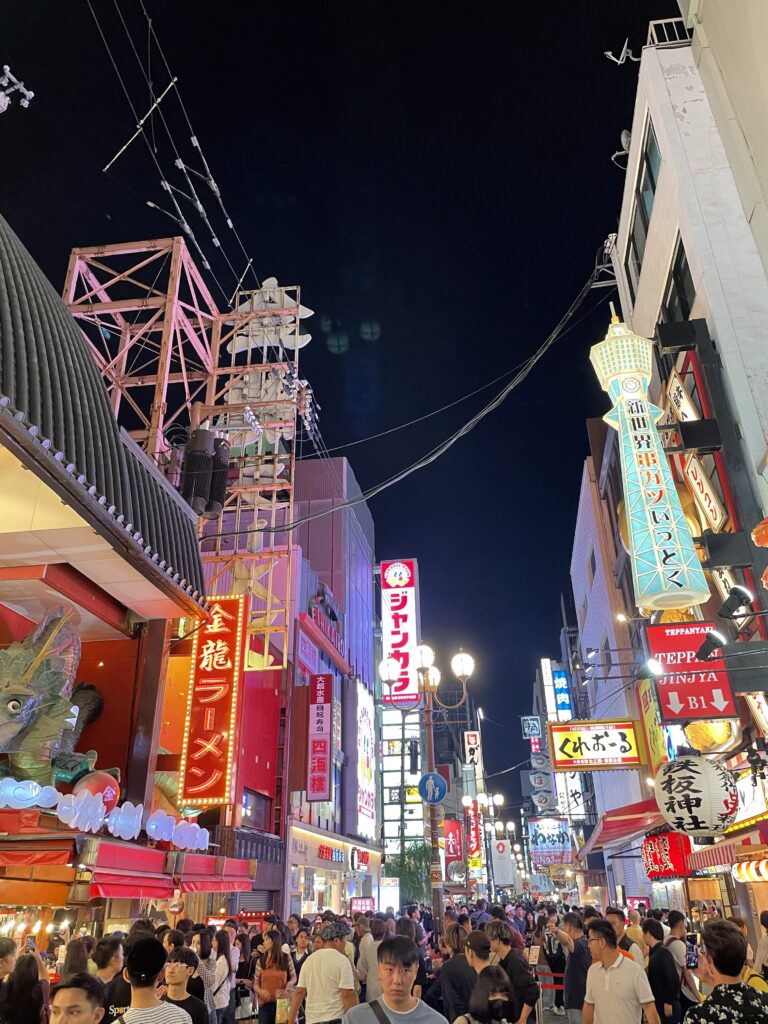 Eine mini Mini Runde joggen, ich mag Flüsse zum joggen 😀Währenddessen läuft die Wäsche. Jeeeedes Hotel hat nicht nur Getränke Automaten, sondern auch Waschmaschine. Für 600 Yen wird meine Wäsche gewaschen und getrocknet in 130 Minuten. Hatte heute morgen Glück, davor war immer belegt In Osaka erst mal Gepäck abgeben und los essen – Aal – 1.700 Yen (11.40 Euro)Dotonburi bei Tag N Muschelchen im Kurumon Ichiba Markt (600 Yen – 4 Euro)Hühner Brühe ramen – 900 Yen – 6 Euro Und ab ins Zimmer. Das erste wo man kein Fenster öffnen kann. Und auch Treppen kann man nur als Notausgang nutzen, dabei bin ich nur im 3. Stock 😅Harukas300, ein Aussichtsturm für 1.500 Yen – 10 Euro Auf jeden Fall guter Blick. Ich bin fasziniert, wie wenig Auto verkehr im Vergleich in japanischen Großstädten ist Es gibt auch lustige Lichtshows abends Und die Bäder haben einen Ausblick, der es in viele Google Rezensionen gepackt hat Ok, wieder unterwegs. Mal eine andere Art Schaufenster Bei donki – Don Quixote, einem Laden für quasi alles Leicht überfordernd und anders als sonst oft in Japan – sehr laut Übrigens die meisten der unendlich vielen Automaten hier sind für Getränke. Dafür gibt es quasi fast keine öffentlichen Mülleimer. Hätte mich irritiert, wenn ich es nicht vorher gelesen hätte Buntes ShinsekaiUnd abends ist dotonbori voller und bunter und lauterTakoyaki sind ein Must eat in Osaka Und hier gibt’s wirklich wirklich viel Baumkuchen