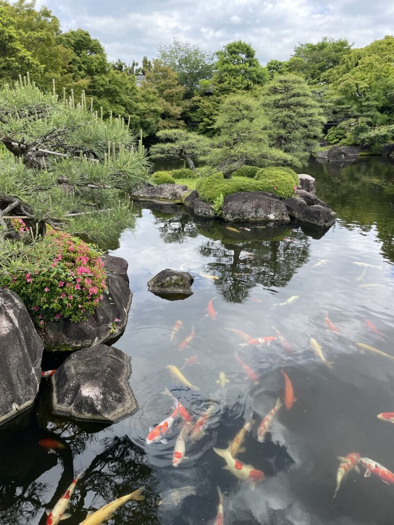 Heute ist es so weit, mein erstes und einziges Hotel Frühstück Eine bunte Mischung, muss ja Zeug probieren Vor allem wollte ich endlich Natto probieren. Fermentierte Sojabohnen. Sollen gesund sein. Riechen etwas, aber kein Vergleich mit „Stinkekäse“ oder durian. Geschmack hatte es weniger als erwartet, habe beiliegenden Senf und Soja Sauce ergänzt und mit Reis gegessen (aber ehrlicherweise nicht alles). Hier mehr Info: https://de.m.wikipedia.org/wiki/NattōWas süßes Und der Luxus, vergleichsweise hier teures Obst Gestärkt noch den großen backpack nach Hiroshima geschickt. Ich konnte ihn einfach im Hotel abgeben, der wird zum nächsten Hotel geliefert, die haben sogar angerufen um zu klären, dass es auch wirklich ok ist, wenn mein Gepäck schon einen Tag vor mir ankommt (was ich eigentlich schon abgeklärt hatte). Aber wie so oft, doppelt hält besser. Kosten 1.720 yen – 11,55. und ich kann mit kleinem Rucksack die nächsten Tage bestreiten. Und fange an in Himeji. Wer hier das Schloss nicht findet, der wird es an vielen anderen Orten schwer haben. Man sieht es schon an der Station Auf dem Weg sind außer seitlicher Shopping Meilen, auch Statuen ohne Ende Da ist es ja. Eintritt kostet 1.000 Yen, mit Garten 1.050, was ich dann mal wahrnehme Man kommt auch in ein mehrere hundert Meter langes Gebäude nebenan, hier haben zb die Zugehfrauen gewohnt Schloss selbst ist von innen eher karg, Respekt was die damals steile Stufen gegangen sind Ausblick von obenAber alles dicht vergittert So ist es gebaut Sonnig, windig, schwülHuch, ein Touristen Boot. Das könnte ja fast so in Vietnam seinDer Garten hat einige Fische. Ist nicht zum Schlendern, da es eine Wegführung gibt und einen TouristenstromAber schön ist er und mit Blümchen die ich noch nicht gesehen hatte Und da ich in Kyoto nicht im Bambus Wald war, habe ich ihn jetzt hier 😂Und wieder Richtung Bahn, weiter nach ImabariMein erster Corn dog, mit ketchup und senfMein Hostel für die Nacht Ein schneller Blick auf meine Strecke morgen bevor die Sonne untergeht Eins der lokalen Gerichte packe ich zu essen – Yaki-buta-tamago-meshi, Reis, Schwein, Ei und Sauce. Dazu Gyoza. Lecker ist es 1180 Yen – 7,92 Euro Dafür lässt mich das Zitroneneis kalt, fast wie eingefrorenes Zuckerwasser