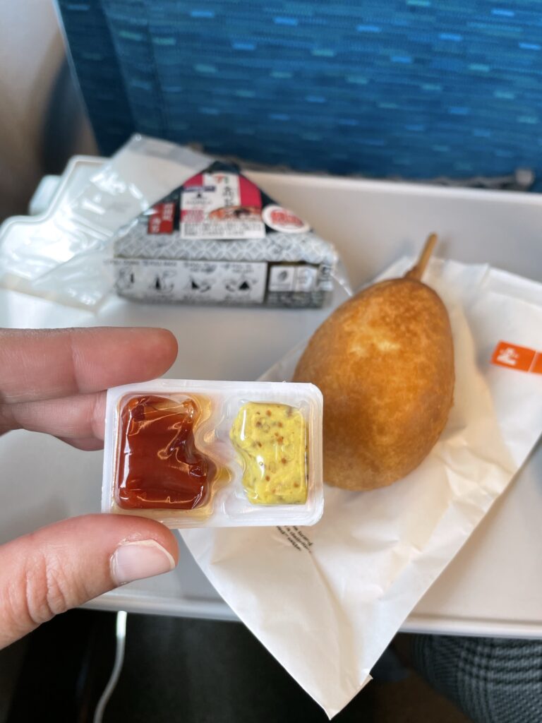 Heute mal was trinken, das linke schmeckt komisch und das rechte wie die Flüssigkeit eingelegter Mirabellen mit Kohlensäure Nach 40km Rad, vielen stunden auf den Beinen, 17.500 Schritten war ich faul und der Uber eats aufstellest neben der Rezeption hat mich auf die Idee gebracht mir Essen liefern zu lassen. Hatte auch einfach lange kein Sushi mehr – 1650 Yen 11,05 Euro Die meinten es gut mit Beilagen 😅. Fairerweise sind die Päckchen echt klein, 3 soja Saucen, 3 wasabi und 2 Ingwer habe ich wirklich verbrauchtDie hatten mich seit Ankunft in Japan angegrinst Und eher enttäuscht. Langweilig