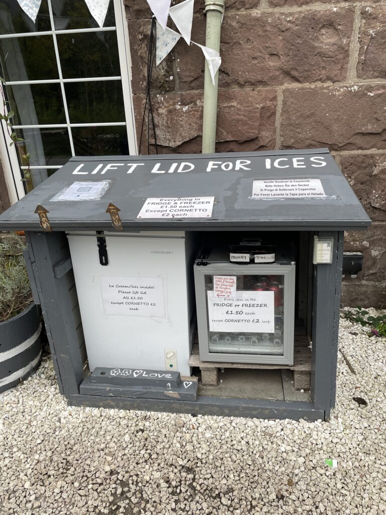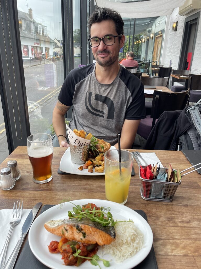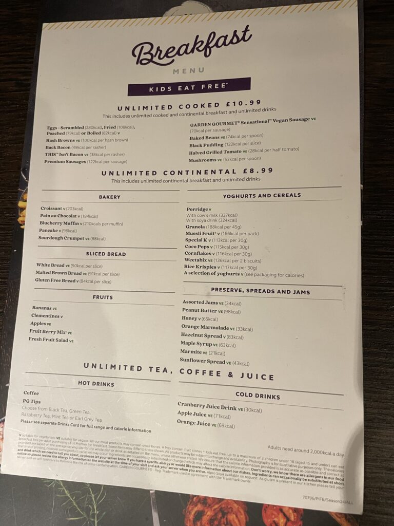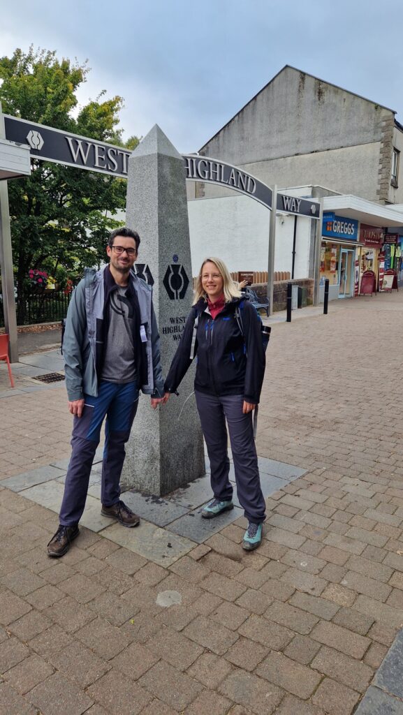 Heute geht’s dann mal Wandern, ab nach Drymen. Unser Hotel ist gut 1km vom Start, das Premier Inn Bearsden. Und hier wird auch unser Gepäck abgeholt, Ginger Routes nimmt es gegen 7:45 in Empfang und bringt es zum nächsten Hotel. Und wir starten mit einem großen Frühstück , mit vegetarischen Optionen auf Bestellung. Den Rest gibt es am Buffet
